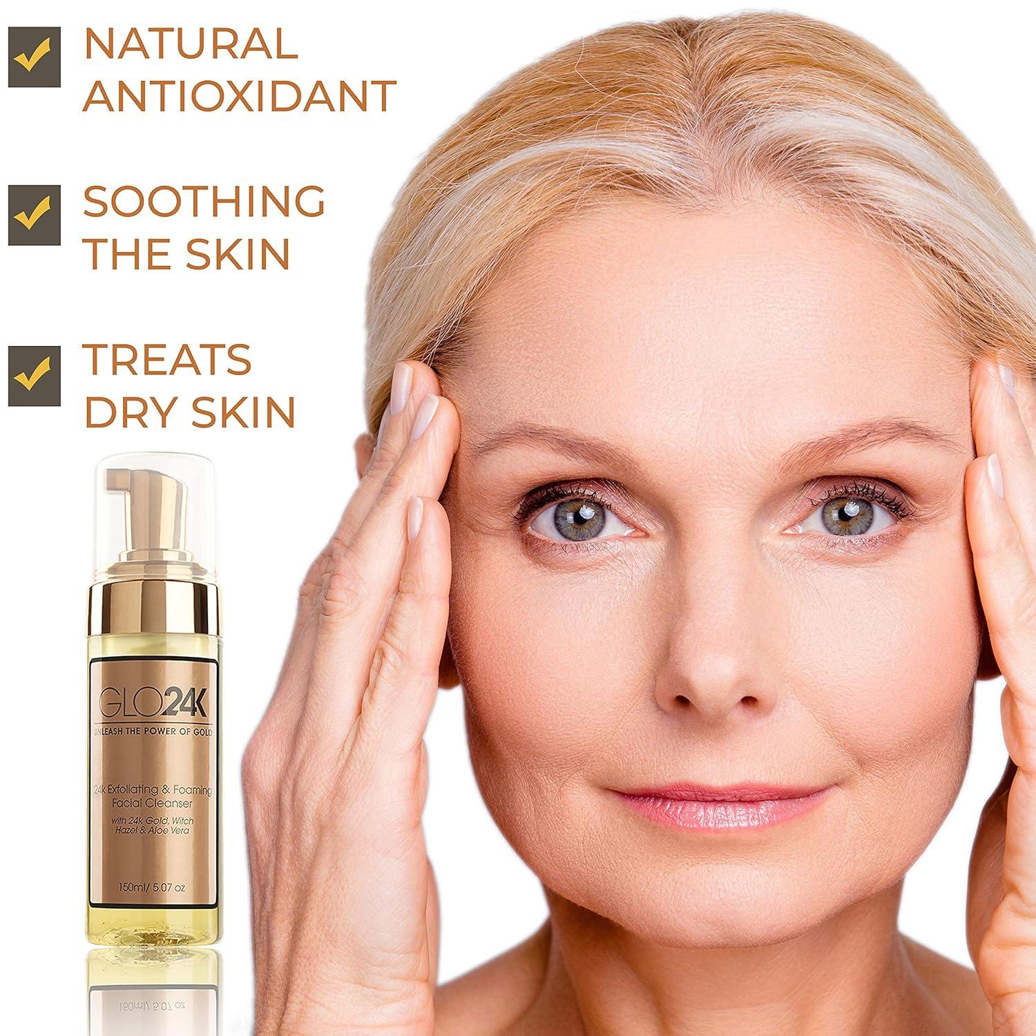 GLO24K 24K Exfoliating & Foaming Facial Cleanser With 24K Gold, Witch Hazel, And Aloe Vera